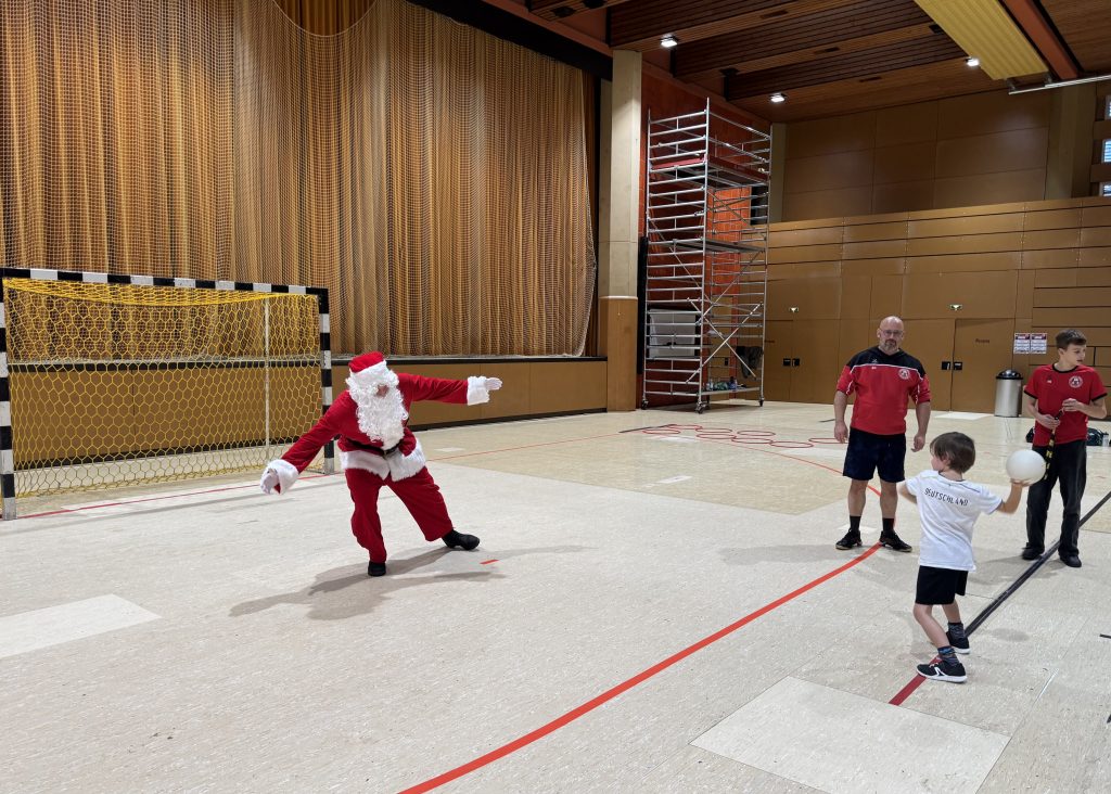 Ein besonderes Highlight wartete am Ende des Trainings: Der Weihnachtsmann ließ es sich nicht nehmen, persönlich vorbeizuschauen und Geschenke zu überreichen. Dies tat er nicht, ohne sich davon zu überzeugen, was die Kids das Jahr über gelernt hatten. So durften sie zum Beispiel Siebenmeterwerfen mit dem Weihnachtsmann im Tor.